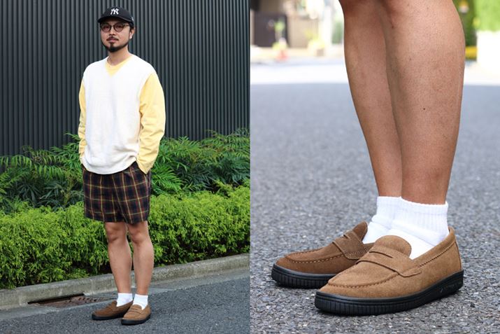 ソールは、同社スケートシューズの定番「ワン」と同じものを採用。フラットでありながら、しっかりグリップしてくれるだけでなくクッションも効いているので、アフタースケートシューズとはいっても履き心地グッド。むしろ足を締め付けないというローファーの特性もあって、リラックスした着用感が味わえます。