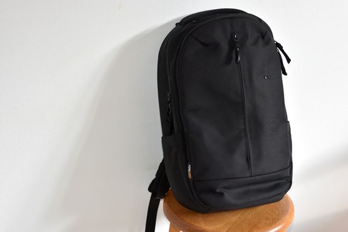 この「トラックス バックパック」に関しては、一見シンプルながらも、縦型のフロントジップが個性を主張。オールブラックで装飾を極力排除したミニマルなデザインはしっかり踏襲されており、インケースらしい風格を感じさせます。ロゴまでオールブラックで仕上げてあるため、ビジネスシーンでも悪目立ちすることはありません。
