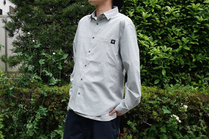 このシャツは着心地もバツグン。生地に細かい凹凸があるから、汗をかいてもベタッと肌に張りつきにくいんです。サラサラしたさわやかなタッチで、長時間着ていても不快感とは無縁。しかも、速乾素材で汗をかいてもすぐ乾くため、アクティブに動いてもずっと快適です。小雨くらいなら、雨に降られても乾きが速いので心配ありません。