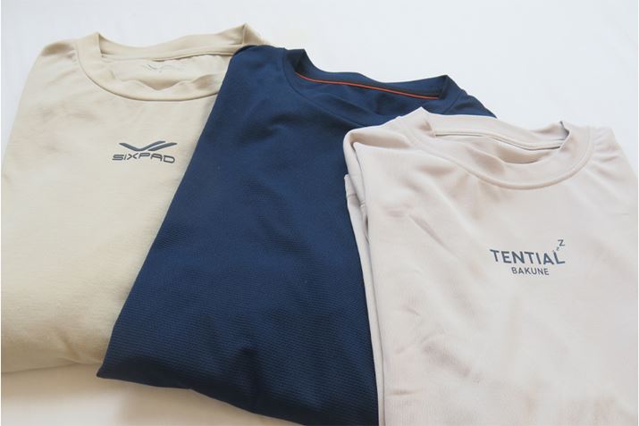 今回ピックアップしたのは、就寝時の着用を想定して開発された「リカバリーウェア スリープ」(トップ&パンツ)です。しっとりとした滑らかな素材で、生地は、通常版のシックスパッド「リカバリーウェア」と比較するとやや薄手。その分、着心地は軽やかです。ゆったりとした締めつけのないシルエットなうえ、伸縮性が高いため、着ていてとてもリラックスできます。個人的にはヌメ感のある生地がとても心地よいと感じました。