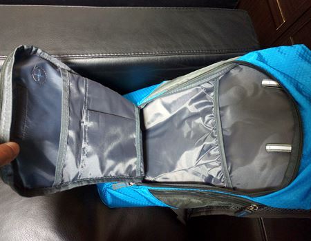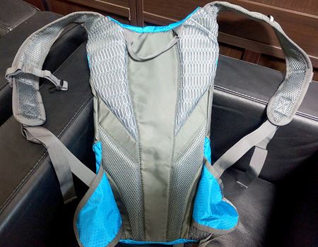 容量2Lのハイドレーションバッグが付属しています。走りながらチューチューと水分補給できる水筒バッグのことです。画像のように取り外し可能。ここまではごく普通のスポーツリュックといったところですが、実はすごい特徴があるんです。