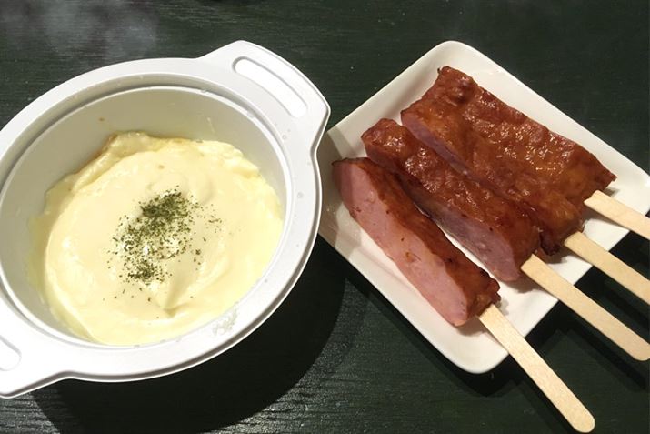 これをフライパンでこんがり焼いたら、後はチーズに付けて食べるだけです!