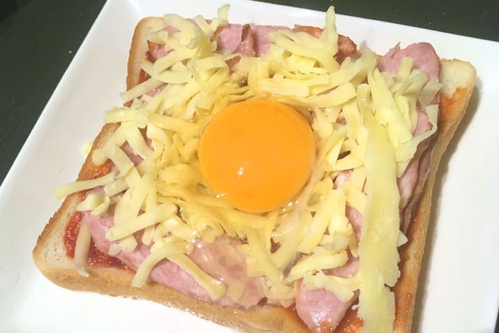 もちろんパンにも合います。半熟卵、ハムなどが乗ったビスマルクというピザがあるのですが、今回はそれをトーストで作ってみたいと思います!
