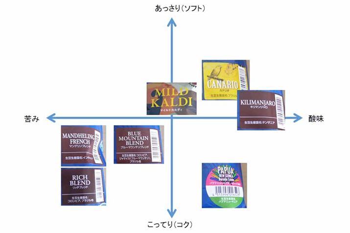 7種類を飲み比べてみて、豆によって本当に全然違うことを再認識しました。まとめとして分布表を作ってみたので、みなさんの豆選びの参考になれば幸いです。