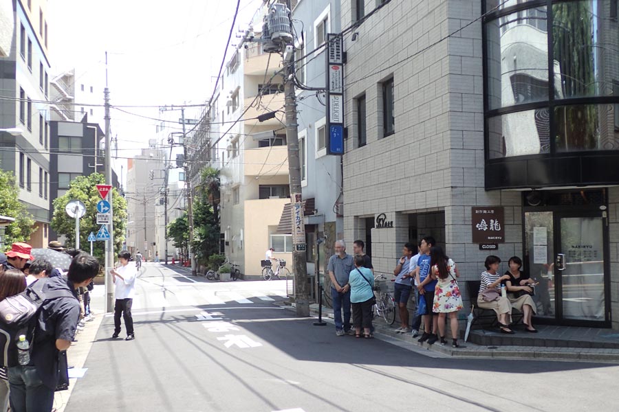 そんな一流店のコラボカップ麺が日清食品から登場したので、食べ比べてみない手はありません。前述のように、「マツコの知らない世界」でマツコさんが絶賛していただけに期待が高まりますが、何せミシュラン掲載店なので、行列は必至。今回は11時30分の開店よりも1時間早い、10時30分にお店にうかがいましたが、すでに10人ほどの行列が! しかも、そのうち半分以上が外国人のお客さんだったので、これもミシュラン掲載効果なのかと驚きました。