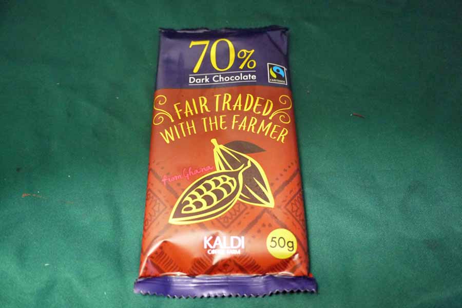 カルディオリジナルのフェアトレードチョコです。今回はカカオ70%をチョイス