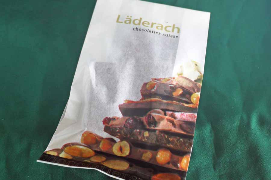さてお値段も跳ね上がってまいりました。それでも食べてみたいスイスチョコの名店、「レダラッハ」の板チョコです。とはいっても都内で買える直営店は100g単位の量り売りとなっており、数枚のブロックで購入するような感じになります。10種類あるチョコはどれもアーモンドやフルーツの入ったチョコです。このナッツやフルーツの味もまたたまらないんですよね。ビターチョコに飽きたらおすすめ。