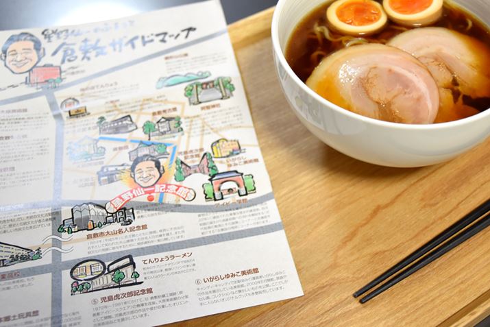 パッケージには、倉敷の観光スポットやグルメスポットなどを紹介する「星野仙一のふるさと倉敷ガイドマップ」が同梱。その中には「星野仙一記念館」の姿も