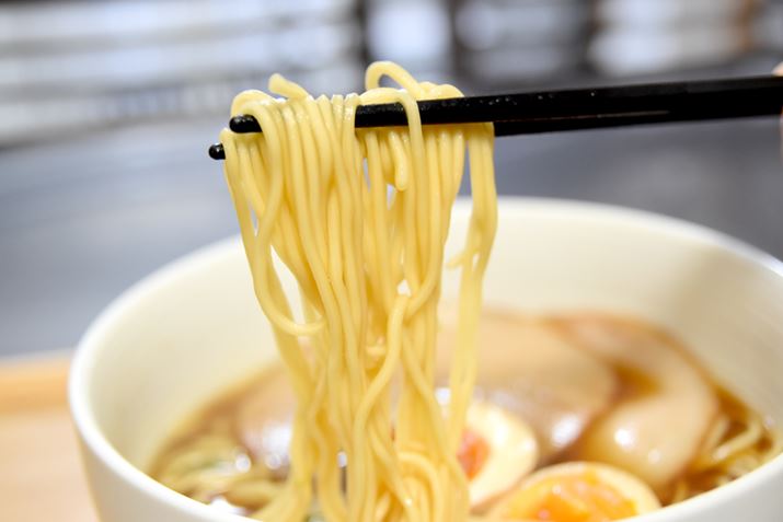 コシが強い熟成乾麺は、ゆで時間を調整することで、固めから柔らかめまで、好みに合わせて作ることができます。今回は「カタ」でも「ヤワ」でもない「普通」の固さにしてみましたが、モチモチした歯ごたえがしっかり残っていました。これならきっと、お店のラーメンも美味しいはず。いつか、行ってみたい……。