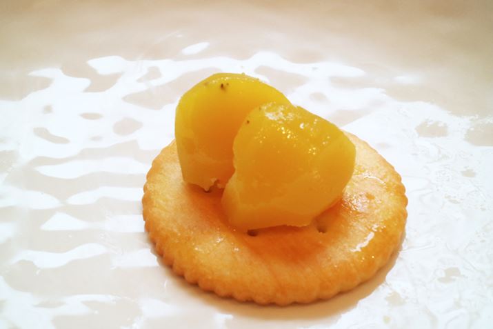 リッツは塩気が少しあるので甘いものと組み合わせても相性がいい。スイカに塩をかけると甘く感じる現象や、シーソルトアイス何かと似ているのかもしれない。魚などを載せても合うので、おかずとしてもデザートとしても食べることができる。