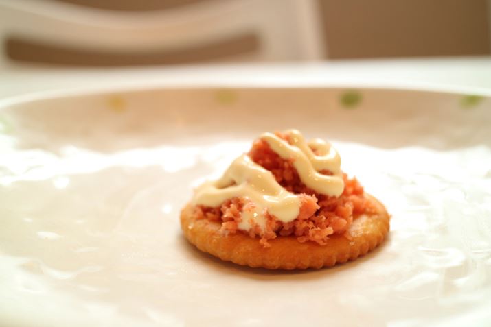 缶を開けて載せるだけで完成するので、缶詰とリッツは相性がいいかもしれない。
