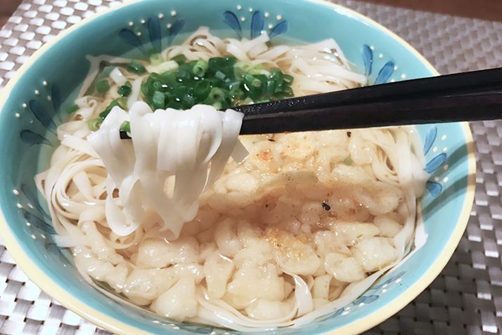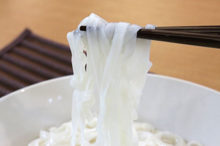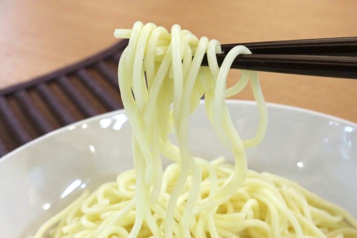 平麺は、うどんというより平べったい形のそうめんの味。においもクセも気にならず、のど越しもさわやか! 氷水で洗って冷たく冷やすとよりおいしいと思います