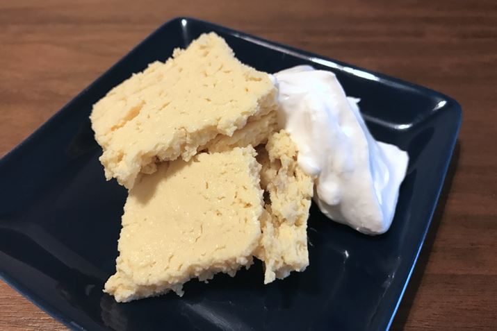 クリームチーズやノンカロリー甘味料と混ぜてチーズケーキに。糖質制限中も甘いものが食べられる! と意気揚々と作ってみましたが、正直、おいしくなかったので完食せず。