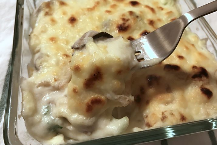 マカロニではなく、ホワイトソースの代わりに使用します。無調整豆乳と一緒にブレンダーにかけてクリーム状にします。こちらも完食せず。グラタンに使用するなら、クリームの代用はあきらめて、マカロニやラザニア代わりに使用したほうが絶対いいと思います。