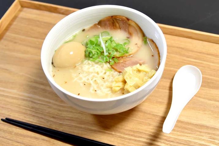 次に紹介するのが、屋久島あごだし豚骨ラーメン。ただの豚骨ではなく、屋久島産の「さば節」と「あごだし」とをふんだんに使ったスープとあって、期待値が高まります。