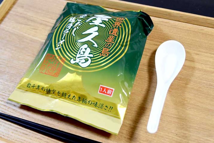 緑色のパッケージが印象的な、屋久島あごだし豚骨ラーメン。屋久島産の「さば節」と「あごだし」を使ったスープが特徴です
