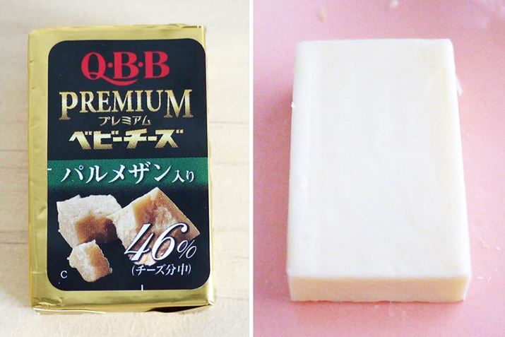 パルメザンチーズが46%も配合されているという贅沢(ぜいたく)なベビーチーズです。本当に香りも味わいもほぼパルメザンなんですよね。これはもう焼き料理とかに合わせると最高です。ピザの上にのせて一緒に焼いてもいいですし、料理に使えるベビーチーズですよ。