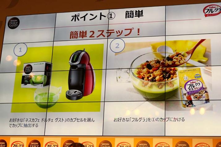 働く人の中には、朝は忙しくて朝食をあまり食べないという方も多いはず。そんな現状を受け、ネスレ日本とカルビーは、ネスレ日本のカプセル式本格カフェシステム「ネスカフェ ドルチェ グスト」で作った温かなドリンクと、カルビーのシリアル「フルグラ」を組み合わせて作る新しい朝食メニュー「泡ふわ温フルグラ」を提案。さっそく食べて来ました!