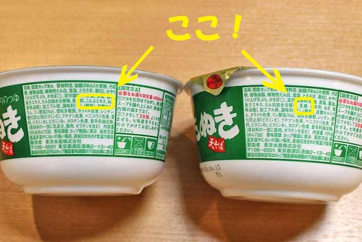 同じく、左が「どん兵衛」で右が「緑のたぬき」