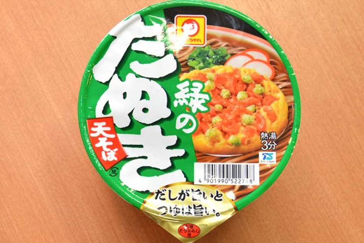 ・「緑のたぬき」は麺がちぢれていて、のど越しは弱いがつゆの吸い上げはいい