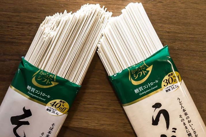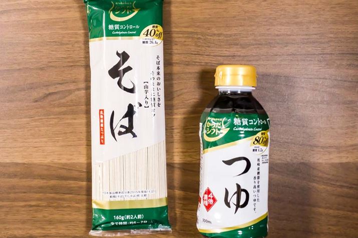 一見、何の変哲もない乾麺とそばつゆに見えるが、糖質制限ダイエッターにうれしい糖質オフ食品だ