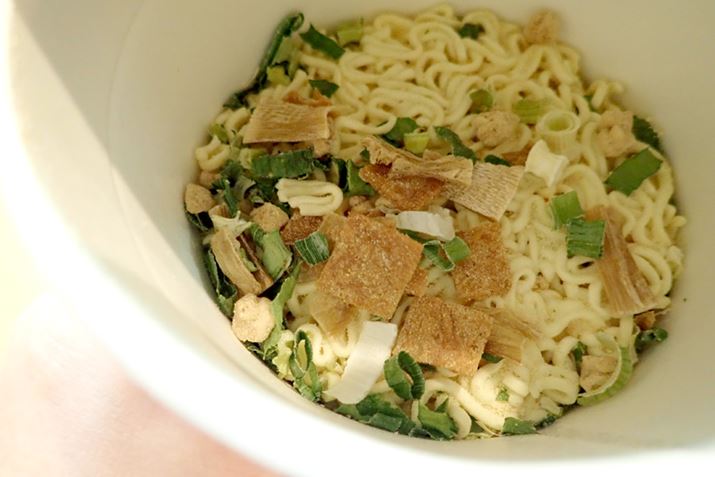 「仕上げの小袋」がカップ麺のフタに。この中身は鶏脂で、スープにコクを加えます