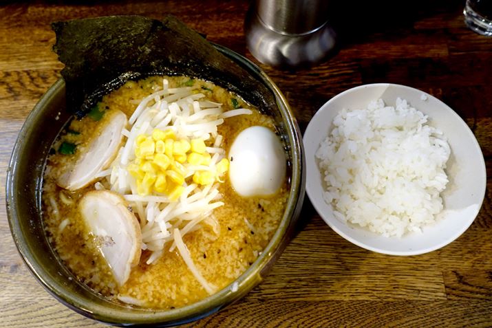 東京・京橋にある「ど・みそ」で、「特みそこってりらーめん(背脂あり)」(930円)を注文。みそラーメンと相性のよさそうな、半ライス(50円)も用意しました