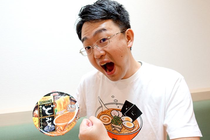 ということで、今回の“ラーメン大好き松田”さんは、このコラボカップ麺に決定。さっそく、東京・京橋にある「ど・みそ」本店で「特みそこってりらーめん(背脂あり)」を食べて、カップ麺の再現度を検証してみることにしました。