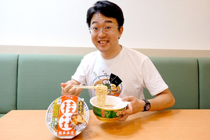 老舗の熊本ラーメン店「桂花」のコラボカップ麺と、お店の味を食べ比べます