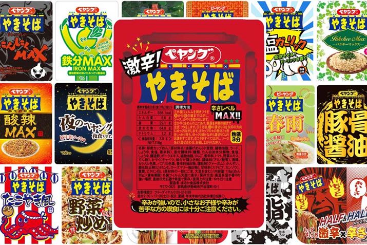 王道である「ペヤングソースやきそば」だけでなく、近年熱い視線を浴びているのが、変わり種〜キワモノに分類されるチャレンジングな製品群だ