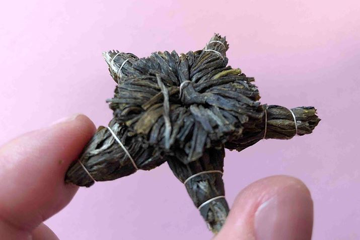 説明書によれば、茶1珠につき、さし湯をしながら3煎め(約1リットル)までおいしくいただけるとのこと。また。飲み終えた後の茶葉は、水中花として飾ってもいいですし、乾燥させて消臭剤としても使えます。