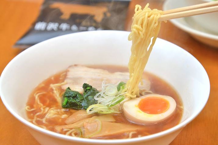 岩手県が誇るブランド牛のひとつが「前沢牛」。この高級食材をスープに使った、リッチな味わいの醤油スープが決め手です。なおラーメンの具材は、お店のほうでスープに合うおすすめをトッピングしてもらいました。こうして盛り付けてみると、ラーメン店のものと遜色がなくて驚きですね!
