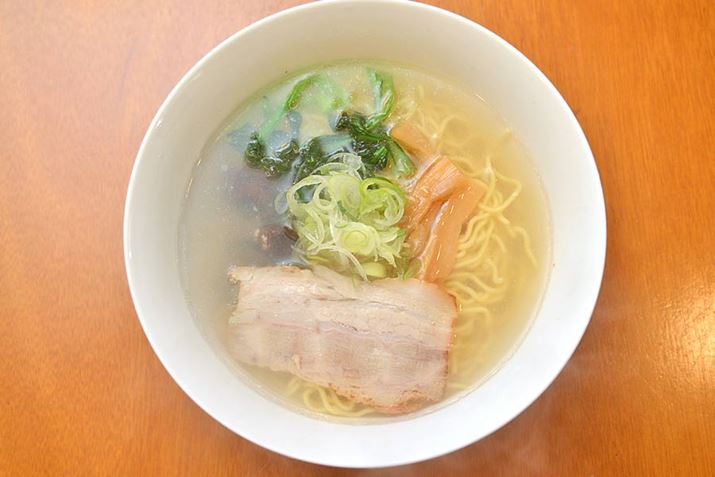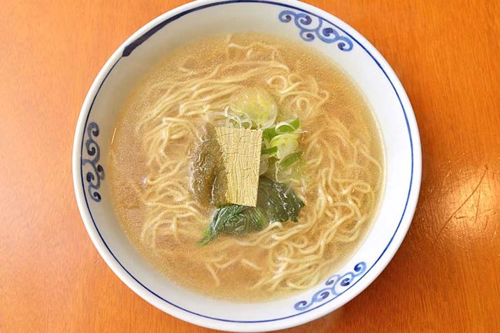この感動をひと言で表現するなら、「北海道、万歳!」。やさしい風味の中に広がる、昆布のパワフルなうまみ。そして麺も独特です。なんと、利尻昆布が練り込まれているではありませんか! そのため、麺がうっすらと緑色になっています。ゆるやかなウェーブがかかっていてスープともよく絡み、しっかりとしたコシがあってノド越しも良好。これは確かに名作です!
