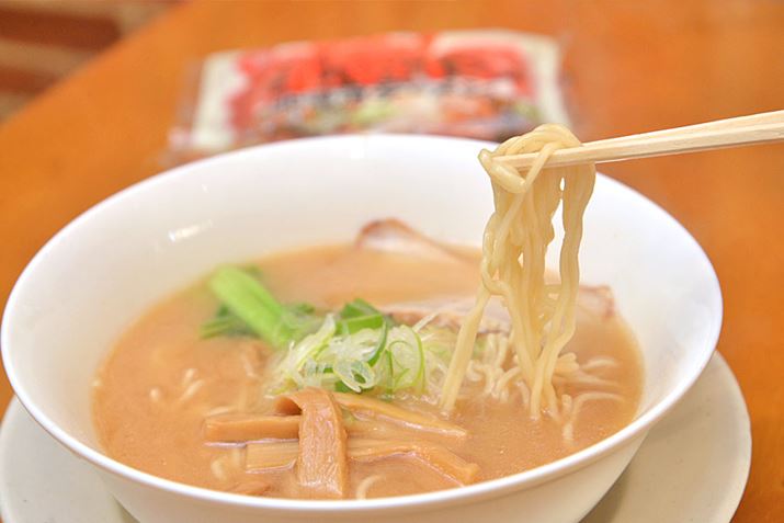 このシリーズは、博多を拠点とする食品会社が発売しているもの。白濁豚骨×ストレート細麺の九州ラーメンを、各ご当地のスタイルごとに数種類展開している中のひとつです。土橋店主いわく、九州ラーメンはストレート麺ということもあって、インスタントも伝統的に棒状で発売されているとか。また替玉の文化があるように、おかわりをする人が多いため、2食入りのパッケージが一般的なのだそうです。