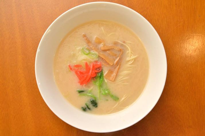 ファーストインプレッションは「九州ラーメンの王者は、博多じゃなくて熊本なのでは?」とすら思える、“ニク”い香りの演出。クリーミーな豚骨スープに、焦がしニンニクフレーバーが利いています。ただ、豚骨感もニンニクテイストもそこまで強烈ではないので食べやすく、もたれる感じもありません。バランスよく調和していてうまみがいい感じに出ているところが魅力といえるでしょう。適度にツルっとプリっとした麺もスープによくなじみ、おいしいです。