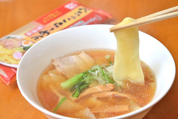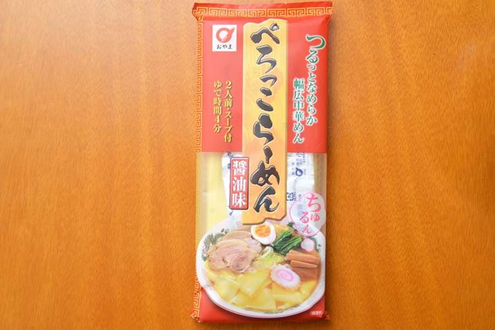 まずは東から。ものすごく幅広い麺が最大の特徴。「ぺろっこらーめん」というネーミングも独特ですが、岩手県の製造元がもともと「ぺろっこうどん」を販売しており、それのラーメンバージョンがこちらだそうです。