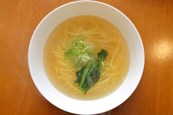 そしていざ、海鮮スープで実食へ。最初は「なんだこれ!」的な驚きがありますが、これはおいしいサプライズ。麺は手延べの技で20時間以上かけて作っているそうで、プツっとした歯ごたえが魅力的です。中華麺に欠かせない「かんすい」は不使用とのことで、パスタに似た食感。でも、この味わいはパスタでもそうめんでもなく中華麺。不思議な食感ですが、しなやかかつ上品なノド越しでおいしいです!