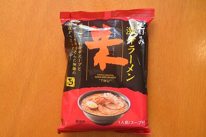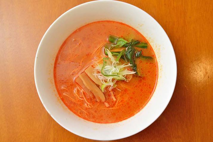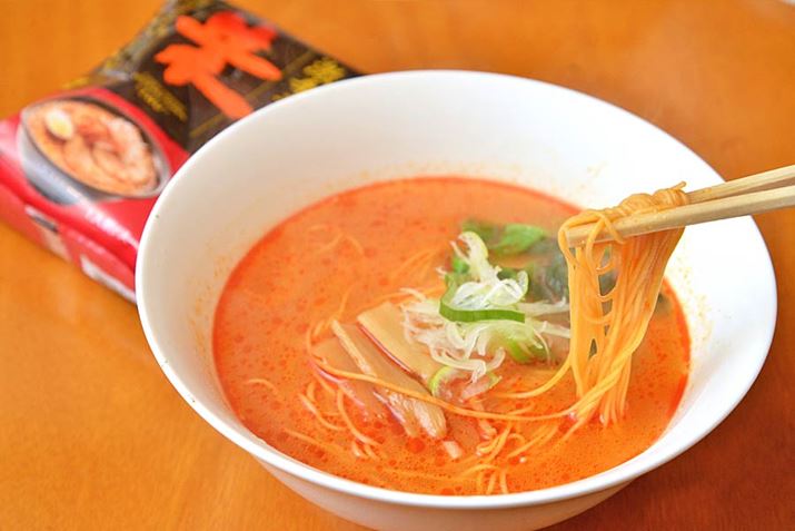 福岡県発で、九州ならではの細麺に唐辛子が練り込まれているのが特徴。コチュジャンやハバネロなどがブレンドされた味噌仕立ての激辛スープには、辛さだけでなくうま味とコクが感じられるとのこと。