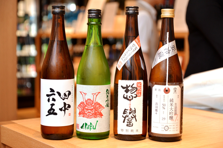 左から、純米酒、純米吟醸酒、特別純米酒、純米大吟醸酒