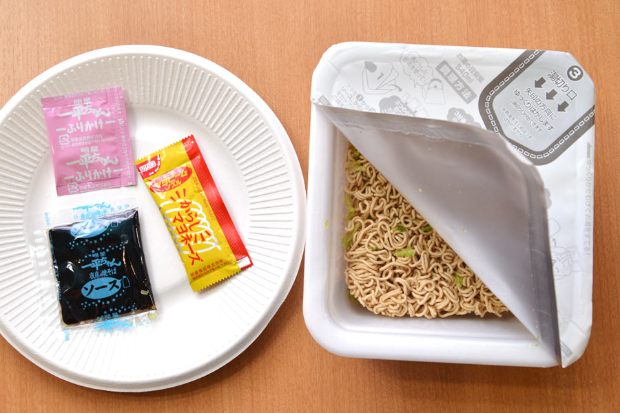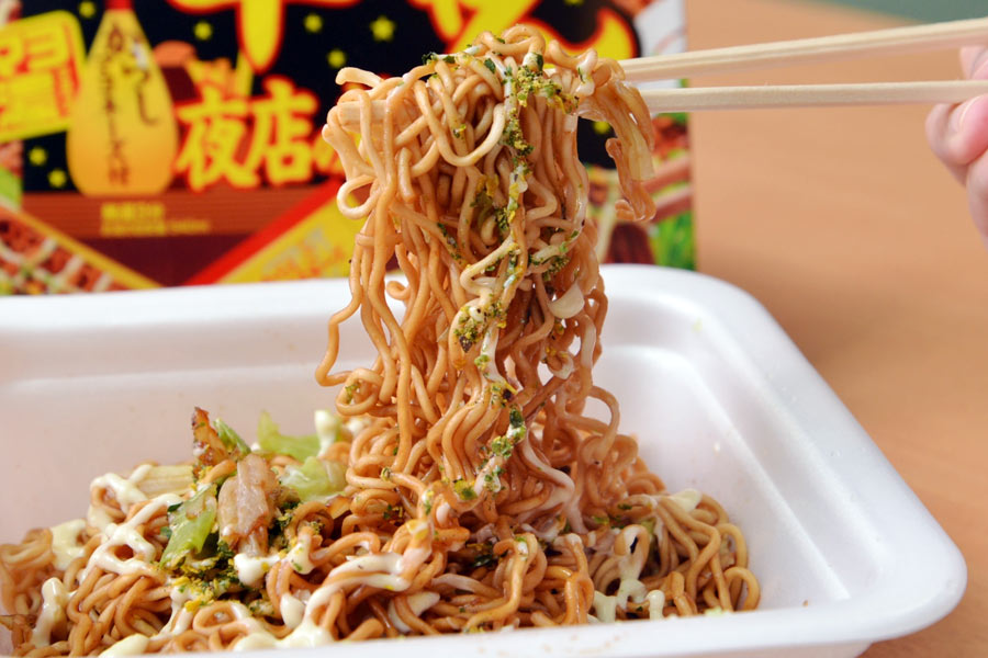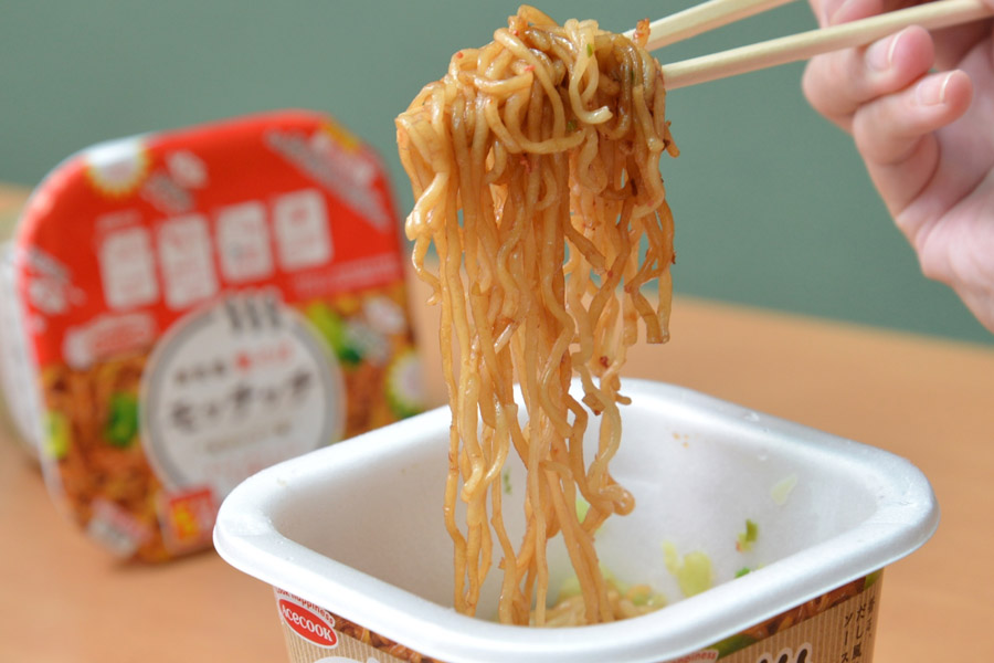 「味のベースは親会社である日清のU.F.O.に似た濃厚で甘めな方向性ですが、麺が乾麺的で縮れているのが大きな違い。そのためペヤングほどではないですが、駄菓子的なジャンク感にあふれています。肉が入ってなく、ソースが麺に練り込まれているところも特徴ですね」(塩崎さん)