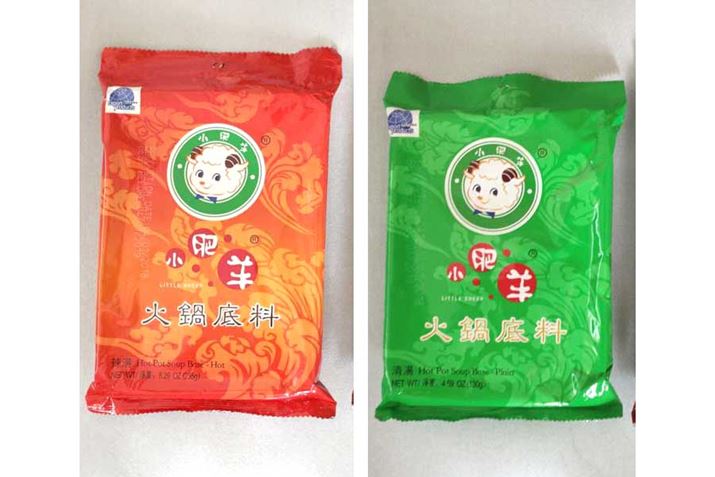 今回選んだのは、本場中国でもチェーン展開している人気の火鍋屋「小肥羊」(シャオフェイヤン)と「海底撈」(ハイディーラオ)の「火鍋の素」。両店とも日本にも出店している有名な火鍋専門店なので、看板を見たことがある人もいるのではないでしょうか。唐辛子の辛さである「辣味」(ラーウェイ)と、山椒の舌がシビれるような辛さの「麻味」(マーウェイ)が同時に味わえる麻辣火鍋が楽しめます。