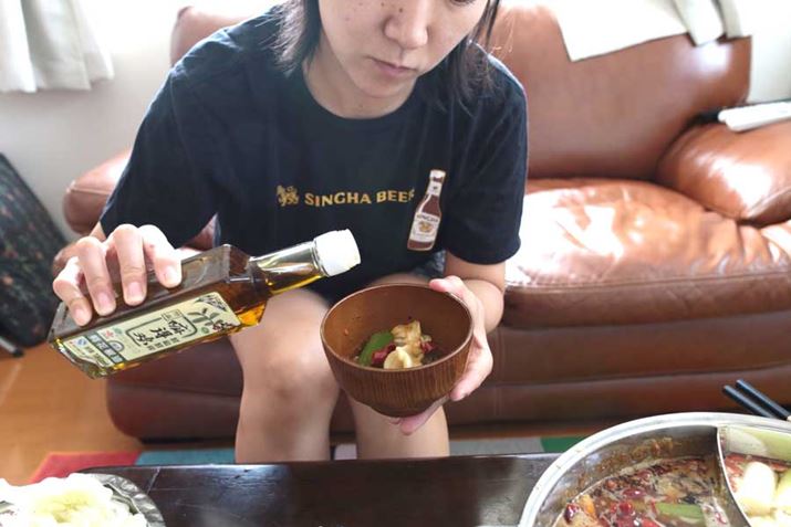 花椒油は、舌がシビれるような味わいを口の中にもたらす刺激的な調味料。さまざまなメーカーが販売しているのですが、正直どれも効果は同じです