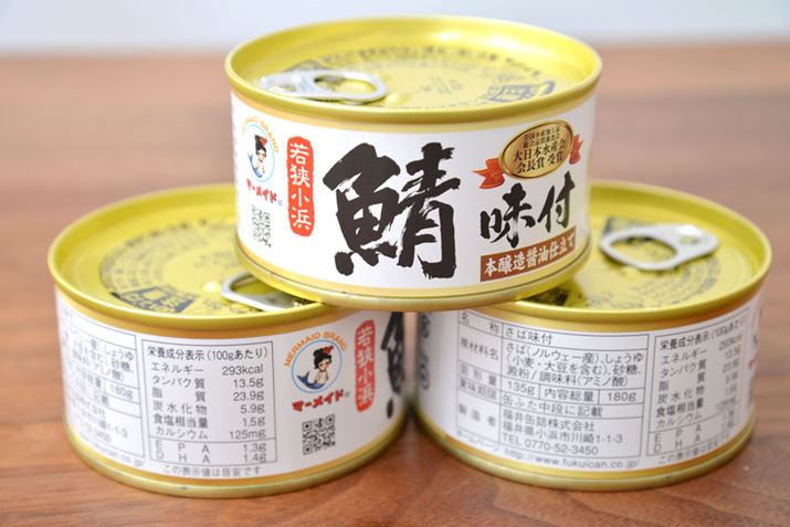 「日本海唯一の水産缶詰メーカー『福井缶詰』。脂のりが抜群のサバを缶に入れ、いったん蒸して、余分な水分や脂分を除去してから加工するという独自の下処理ののち、味付けされています。まろやかで味わいのある関西風の本醸造醤油を使用したサバ缶は香りがよく、まろやかでエレガントな味わい。雑味がなく、余韻は爽やかで止まらないおいしさです」