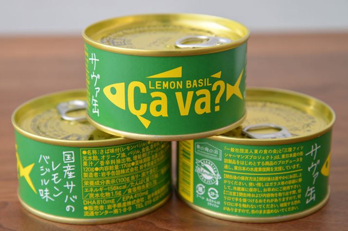東日本大震災の際に届いた全国からの恩に応えたいという岩手県の思いから生まれたサバ缶。商品名はフランス語の「元気?=Ça va ?(サヴァ)」をサバとかけ合わせたもの。パッケージだけでなく味わいも洋風で、レモンの爽やかさとバジルの風味があいまったさっぱり系のおいしさです。