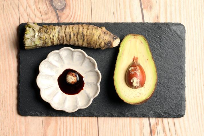 「漆黒」は溜しょうゆを使ったダシ醤油です。「みのび」に比べると万人受けするタイプの味わいです。アボカドにかけたり、ピーマンの肉詰めにかけたりと、少し脂が強いものにかけても味が負けません。