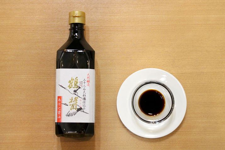 2年間熟成させて造った濃口しょうゆを塩水の代わりに使い、さらに2年間熟成させた、4年もの歳月をかけて造られるのが鶴醤です。旨味がとても濃厚ですが、口当たりがやさしく、深いコクとまろやかさを兼ね備えています。バニラアイスにかけてもおいしいです。