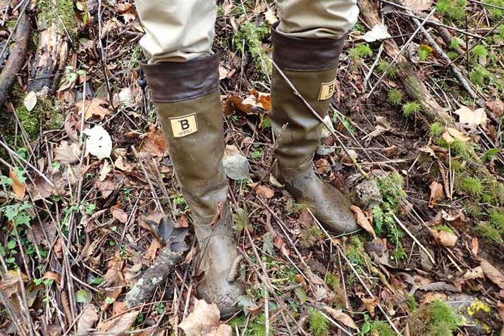 キノコ狩りって何を履いていくべきか毎回迷うのだが、Mさんのお気に入りは「日本野鳥の会」の軽くて動きやすい長靴とのこと。そんなのあるんだ!