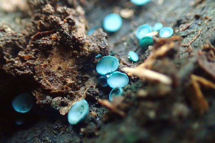 自然界では珍しい青い色をした木。Pさんによると、これはキノコの仕業とのこと