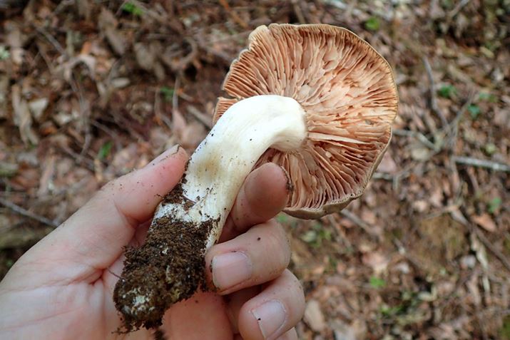 軸を持つとスカスカ。そして少し埃(ほこり)っぽい香りがする。毒キノコこそしっかりと覚えなくては