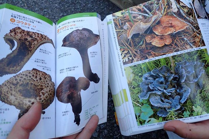 この図鑑での事前勉強はとても重要で、キノコの知識量とキノコ狩りの楽しさは比例する。森で出合ったキノコの名前がわかるという喜びは、街で知っている芸能人にあった感動に似ているのだ。ただ図鑑の内容を全部覚えれば見つけたキノコを100%判別できるかというと、それはまた別のお話。キノコは成長具合や乾燥状態によって姿が全然違うので、持った感触や匂い、あるいは生えている状況といった経験をためていくことが大切となってくる。